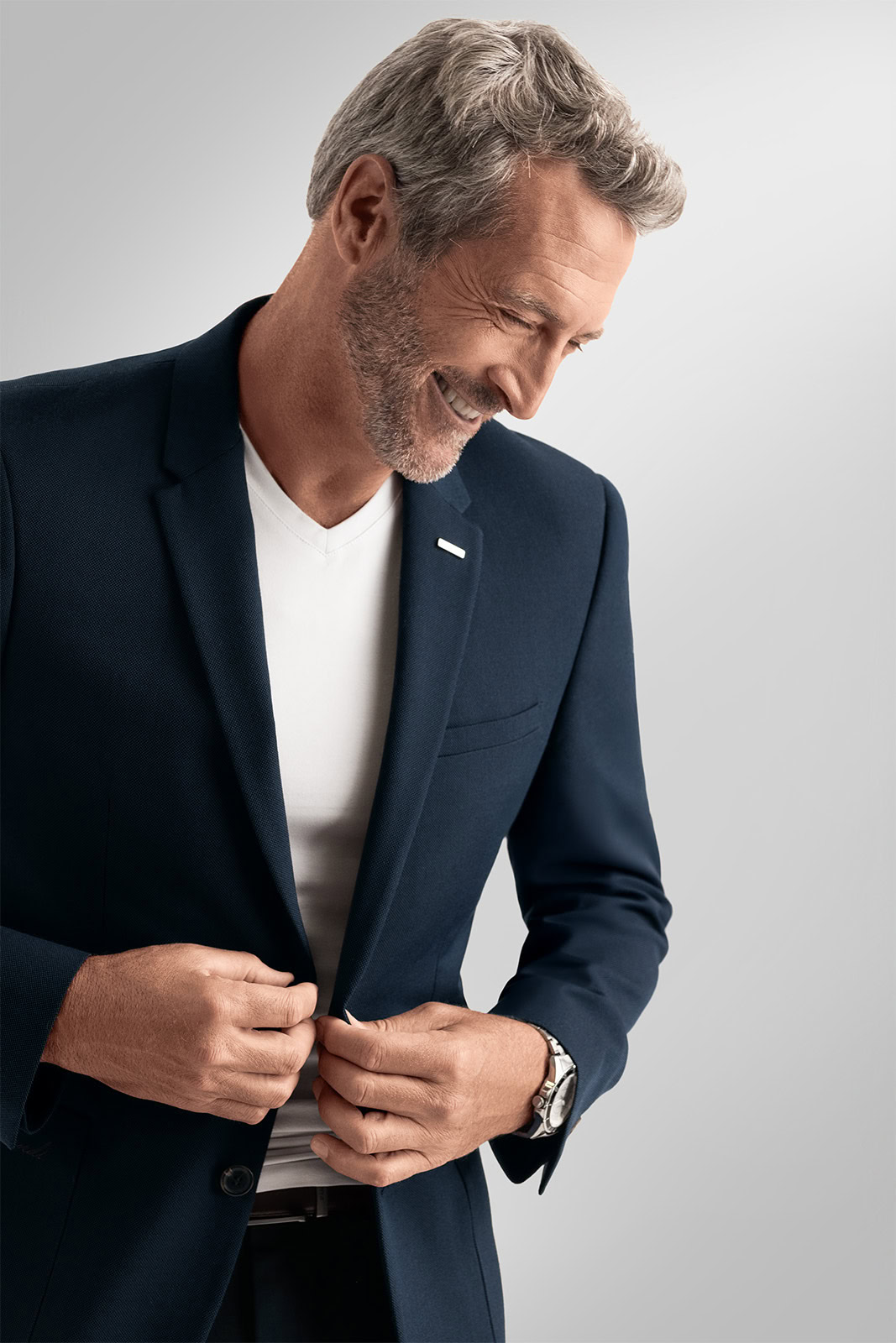 Muži okolo päťdesiatky obyčajne dávajú prednosť klasike. Módne výstrelky ich už nelákajú – chcú byť oblečení dokonale a vedia, že rozhodujú detaily. Dobre si uvedomujú aj to, akú veľkú úlohu zohrávajú doplnky – vreckovka, kravata alebo parfum.
