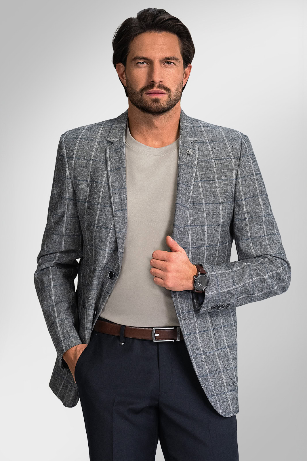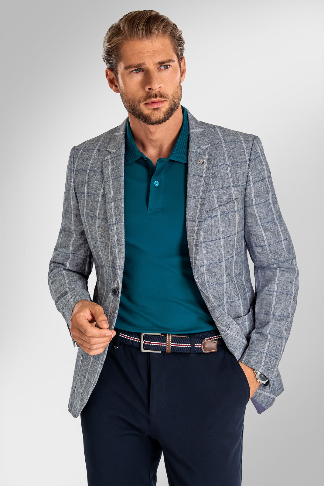 Nechcete sa vzdať elegancie ani vtedy, keď páli slnko? Žiadny problém. Polopodšité saká BANDI z prírodných materiálov s ikonickým kockovaným vzorom vás zavedú do sveta vycibreného štýlu a pohodlia. Dodajte svojmu vzhľadu ľahkosť a šmrnc, ktorý v lete ocení každý muž.