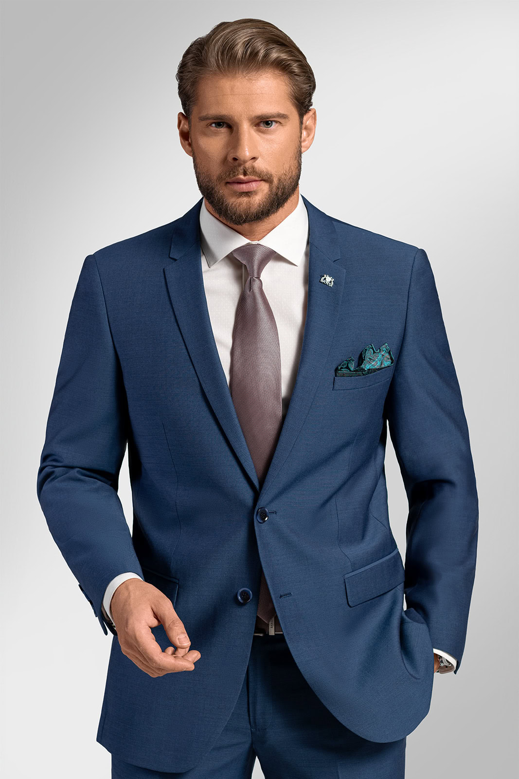 Svojou jedinečnou farebnosťou v strednom odtieni modrej je oblek predurčený predovšetkým na denné nosenie do práce, ako aj na všetky spoločenské akcie. Vyniknete v ňom na obchodnom rokovaní, ako aj počas svadobného obradu. Váš vycibrený vkus určite ocenia aj priatelia počas stretnutia v obľúbenej kaviarni pri dobrom drinku.